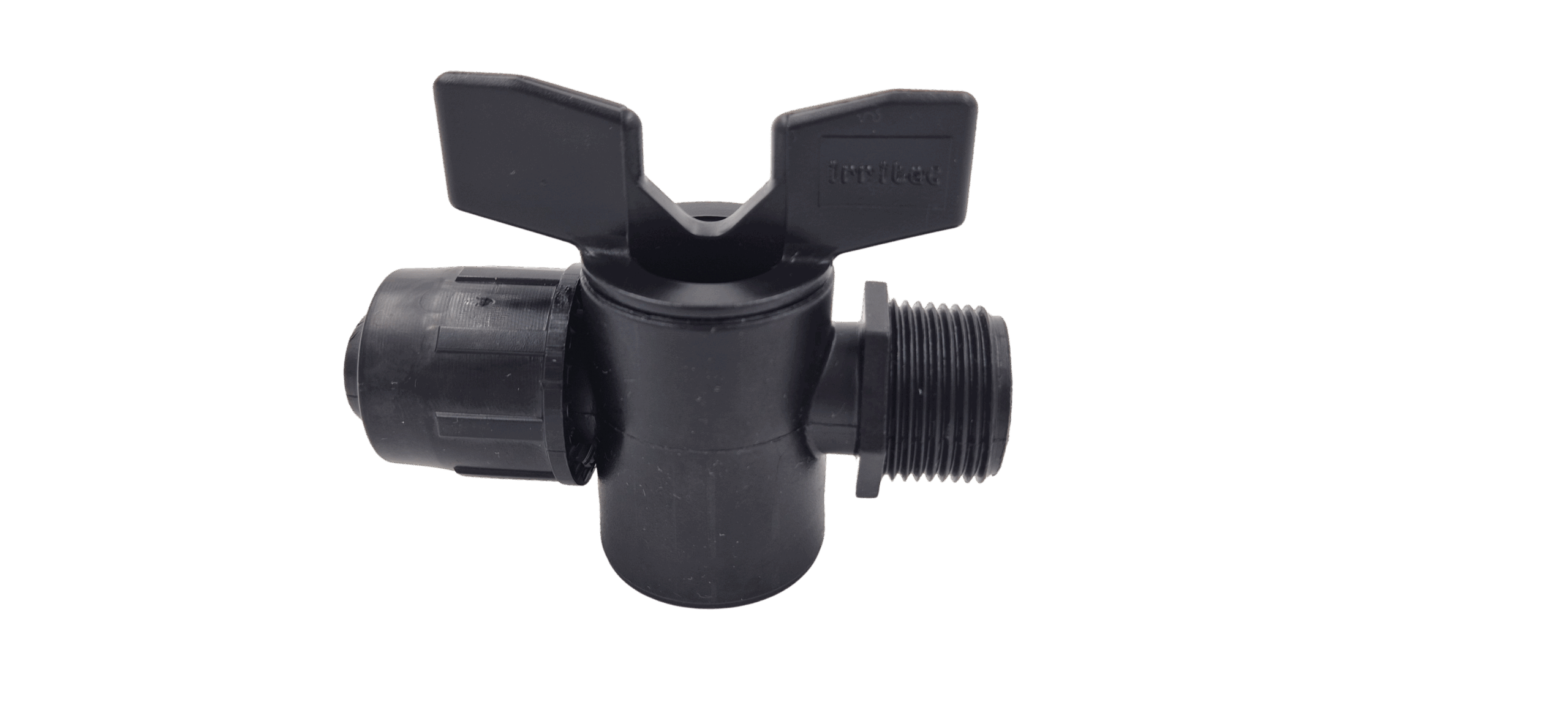 Egyik oldalán 20-os PE csőre kúpos, szorítógyűrűs csatlakozással, illetve másik oldalán 3/4″-os külső menettel ellátott műanyag csap.