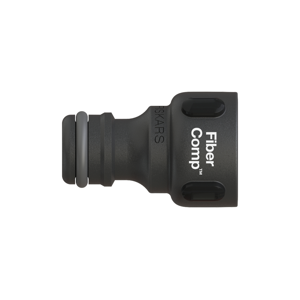 A Fiskars FiberComp csaptelep csatlakozó vízzáró csatlakozást biztosít a vízforrás és a tömlő között.