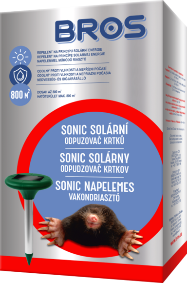 A vakond és egyéb kertben előforduló rágcsálók okozta kellemetlenségek megelőzésének profi megoldása a napelemes vakondriasztó. Nagyon humánus megoldás, mivel célja nem a vakondok és rágcsálók elpusztítása, hanem azok távoltartása. Félperces időközökben olyan hangeffektust és vibrációt bocsájt ki, ami a vakondok és a rágcsálók finom érzékszervei számára annyira kellemetlenek, gyakorlatilag az idegeikre megy, és a választható kisebbik rossz számukra a távozás…