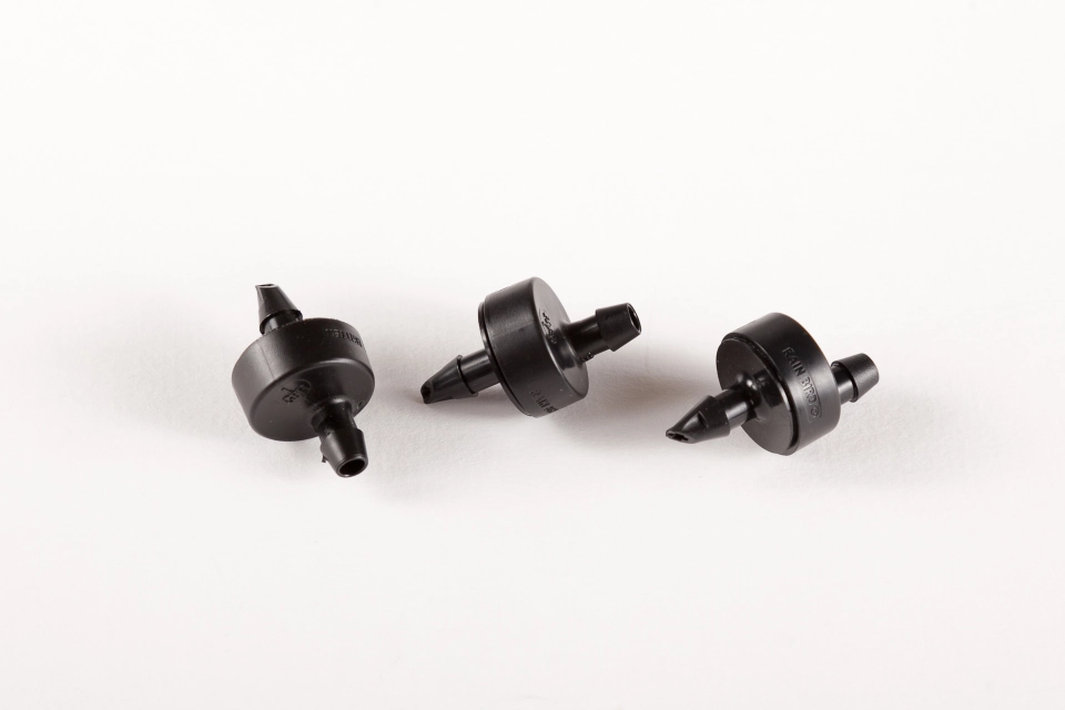 A nyomáskompenzált csepegtetőgomba biztosítja az egyenletes vízkijuttatást változómagasságú felszín esetén is