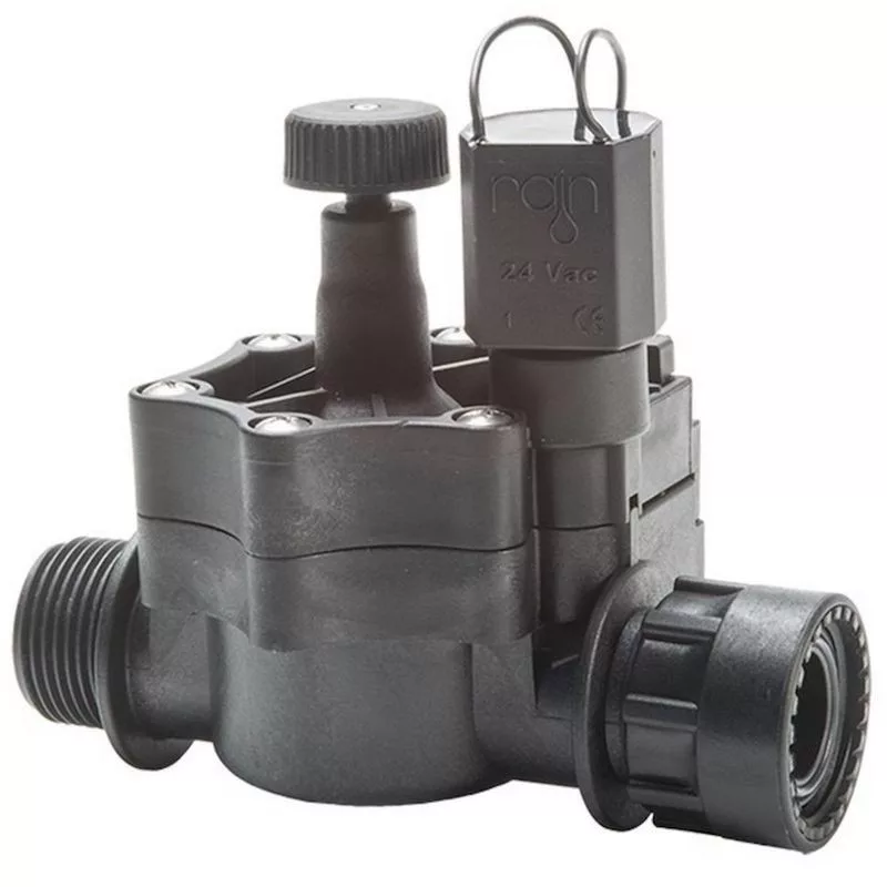 A Rain RN-155 típusú nagy ellenálló képességű, szálerősített műanyagból készített mágnesszelep. A belső rugó és az összefogató csavarok rozsdamentes acélból készültek, így a korrózió veszélye minimális. Egy speciális belső szűrő megakadályozza, hogy a nagyobb szennyeződések bejussanak a membránhoz, így a meghibásodás, szivárgás esélye jóval alacsonyabb. Szolenoidja 24 VAC, azaz váltóárammal működik. A mágnesszelep alapesetben zárt. A mágnesszelep egyik oldalán külső menet található, az elmenő oldalán pedig 1″ hollander, ezzel megkönnyítve a szerelést. Alkalmazható magánkertekben, sportpályákon, közterületeken is. Átfolyó víz mennyisége: max. 9 m3/óra Nyomás: max 12 bar 1″ külső menet, 1″ hollander az elmenő oldalon 24VAC szolenoid. Kézzel is nyithat.