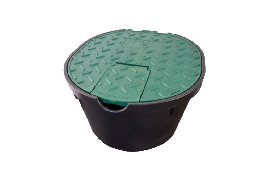 A fedeles csapszekrény (altalajcsap) zöld műanyag háza észrevétlen a fűben. Erős házának és a benne lévő minőségi csapnak köszönhetően hosszú évekig megbízhatóan működik.